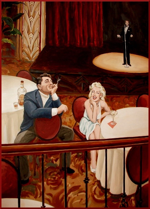 | Rat Pack Era Private Club Mural Dean Martin & Marylin Monroe detail |