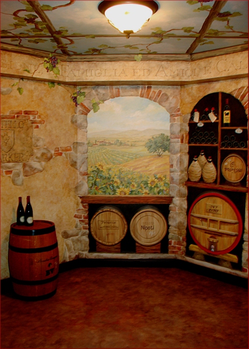 | Wine Cellar Room Mural Grapevine Detail |